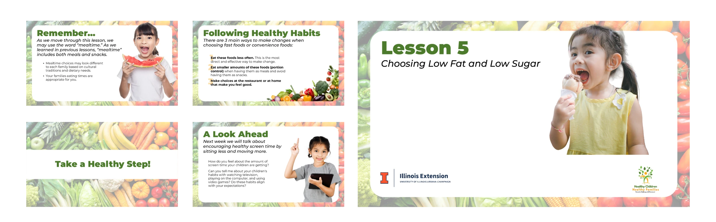 A collection of educational documents and presentations developed for Illinois Extension's Supplemental Nutrition Assistance Program (SNAP-Ed) department. IL SNAP-Ed delivers community-based nutrition education to individuals utilizing SNAP and other nutrition assistance programs, as well as to schools and community partner organizations. Materials were produced across InDesign, Illustrator, Canva, and Adobe Express to accommodate the varied formats and distribution channels required by the program.